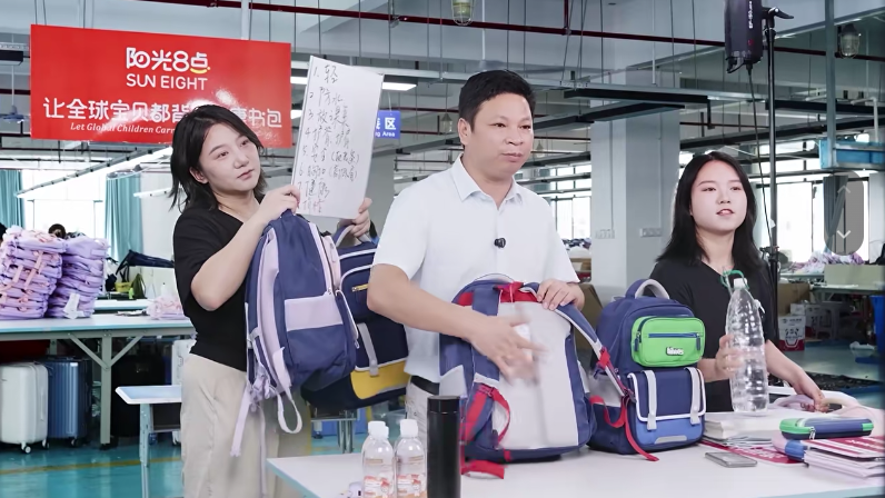 直播中,袁班長努力地介紹著產品,額前的碎發被汗水浸得貼在皮膚上,卻沒顧上擦一把——他手里攥著護脊書包的肩帶,反復演示著“如何調節長度貼合孩子脊背”,連書包側袋能裝下保溫杯、反光條在夜晚能護安全這些小細節,都掰開揉碎了講。仿佛要把每一份用心都通過鏡頭傳遞給屏幕前的人,讓每一次下單都變成奔向孩子的“助力”。
